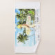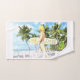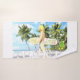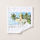 Aloha! Träumen Sie Landschaft mit einem Mädchen, das uns zum Surfen einlädt und Spaß, Sport, in voller Freiheit. Zeichn erstellt mit der Computergrafik 3d 2d.