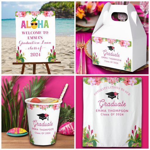 Mit unserem personalisierten Aloha Abschluss Luau Class of 2024 Backdrop stellen sich die luau-themed Abschlussfeiern Ihres Absolventen heraus! Mit fröhlichen tropischen Blicken ist diese Kulisse das ideale Foto, um diesem wichtigen Meilenstein im Leben Ihrer Lieben zu gedenken.