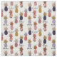Farbenfrohe Ananas in Streifen, Polka-Punkte, Tierdruck und Farbtönen von lila, gelben, rosa Aquarellfarben. Der gesamte Stoff kann verändert werden und die Hintergrundfarbe kann durch Kontakt mit dem Künstler geändert werden.