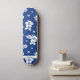 Zeigt eine nahtlose klassische hawaiianische Aloha Hibiskus Blume Muster. Die Blume sind weiß und der Hintergrund blau. Passen Sie den angezeigten Namen an. Cooler Weg, in eine hawaiianische Aloha-Atmosphäre zu kommen, sich an einen Urlaub zu erinnern, für Hawaiianer, Amerikaner, Touristen. Mit diesem krassen Design haben Sie das coolste Board.