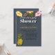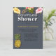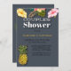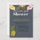 Ich hoffe, Sie werden diesen Ananas mit goldenem Glitzer mit Blätter aus Palmen und einer rosa und gelben Hibiskus-Blume auf grauem Hintergrund genießen. Entsprechende Einladungen und Hochzeitsvorräte stehen in dieser Kollektion zur Verfügung.