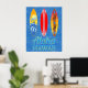 Coole Inselsurfkunst, die den Geist von Hawaii und Aloha mit drei Vintagen Retro-Surfbrettern feiert. Egal ob Sie die Wellen treffen oder den Strand im Sand stürmen, diese Kunst Hawaiis ist perfekt für jeden Inselurlaub.
