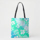 Aloha Tropical Hawaiian Style Hibiskus Green und Blue Floral Tote Tasche.
