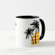 Tasse kennzeichnet eine krasse Grafik der Palmen eines Sonnenuntergangs und und liest "leben Aloha" in einem stilvollen Schriftart!