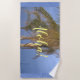 Hübsche tropische Szene für heiße Sommertage. Aloha ist in einem sonnigen gelben lustigen Skript geschrieben. Der Hintergrund hat einen blauen Himmel mit hübschem nahen Aufstieg von drei Palmen, deren Fronten in der Meeresbrise wehen. Cool für Männer oder Frauen. Original Fotografie © und Design von TamiraZDesign.