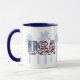 Ein Vintages hawaiianisches Aloha-Shirt in Verbindung mit einer amerikanischen Flagge, um diese Grafik zu erstellen, die von Palmen gerahmt ist. Passen Sie dieses Design auf Ihrer bevorzugten Tasse an.