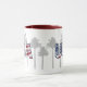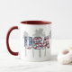 Ein Vintages hawaiianisches Aloha-Shirt in Verbindung mit einer amerikanischen Flagge, um diese Grafik zu erstellen, die von Palmen gerahmt ist. Passen Sie dieses Design auf Ihrer bevorzugten Tasse an.