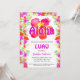 Das Tropical Baby Dusche luau lädt mit farbenfrohen Aloha gegen eine helle Hibiskus-Blume, gerahmt mit exotischen Blumen und personalisiert mit Ihren Informationen. Eine lustige Art, Gäste zu Ihrem besonderen Tag einzuladen!