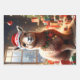 Bilder mit einer Weihnachtsmannmütze und umgeben von Weihnachtsgeschenken ist ein sehr glückliches Alpaca.