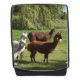 Dieser Rucksack hat vier Alpakas auf ihm.