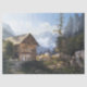 Schöne Vintage Malerei der feinen Kunst der Alpen-Berge und des Chateau im Wald ist auf diesem Seidenpapier. Bild ist das public domain wegen des abgelaufenen Copyright.