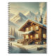 Alpine inspirierte Winterlandschaft mit gemütlichem Chalet umgeben von schneebedeckten Bäumen und majestätischen Bergen. Ideal für rustikale Dekoration, saisonale Kunst und Urlaubsstiftung!