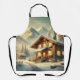 Alpine inspirierte Winterlandschaft mit gemütlichem Chalet umgeben von schneebedeckten Bäumen und majestätischen Bergen. Ideal für rustikale Dekoration, saisonale Kunst und Urlaubsstiftung!