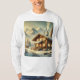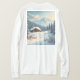 Alpine inspirierte Winterlandschaft mit gemütlichem Chalet umgeben von schneebedeckten Bäumen und majestätischen Bergen. Ideal für rustikale Dekoration, saisonale Kunst und Urlaubsstiftung!