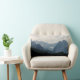 Ein Kissen mit einem Foto von schönen Bergen, bewölktem Himmel und sanften Hügeln mit Bäumen im Vordergrund. Graublau.