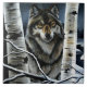 Ein einsamer Wolf im Winter pinkelt nachts zwischen weißen Pappelbäumen hervor