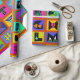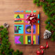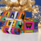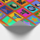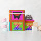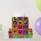 Weihnachtsverpackung, farbenfrohe Geschenkpackung, Geburtstagsverpackungspapier, rot-blau-gelb, orange-grün, Stammeskunst, ethnische Volkskunst, Alphabet-Volkskunst, zeitgenössisches Packpapier, Virginia Vivier, Vagabond Folk Art, Geschenkverpackung.