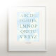 This bordered alphabet artwork features softly lettered A–Z characters in a muted woodland green, set against a dreamy sky-washed background and framed with a warm ivory border. The classic serif lettering feels timeless and peaceful—perfect for nurseries, playrooms, reading corners, or early learning spaces designed with care.