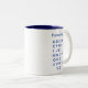 Alphabet-Tasse mit Alphabet schickt und rückwärts auf sie in dunkelblauem nach