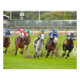 Ein komplettes Feld von neun Pferden, die sich oben auf der Strecke auf dem Rasen und Casino von Parx zum Zuhause drehen. Racing ist der beste Moment, wenn die Vollblüter sich in die Strecke für den letzten Zug in Richtung Ziellinie verwandeln. Als Wegweiser führt das weiße Grau "Fast and Accurate führt die Ladung mit Jockey Jose Ortiz jr in den Bügeln. Grünes Gras, blauer Himmel und weiße Vollblüten im historischen Parx zum Laufen der Alphabet Soup Einsätze. Fleetphoto