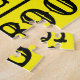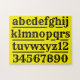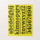Eine Puppe für Lehrer. Eine Puzzle, die kleinen Kindern beim Erlernen des Alphabets und der Zahlen hilft. Ein Design mit dem Alphabet und den schwarzen Zahlen auf einem gelben Hintergrund. Das ist eine gute Lehrhilfe für jeden, der in der Bildung arbeitet.