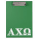 Alphi Chi Omega weiße und grüne Buchstaben Klemmbrett