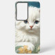 Samsung Galaxy Case mit einem Kätzchen im Jugendstil von Alphonse Mucha! Weiß und flauschig mit blauen Augen Posen mit gelben Blumen. Ein niedliches Geschenk für Katzenliebhaber und Jugendstilsammler!