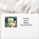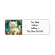 Rücksendeadressen-Aufkleber im Jugendstil von Alphonse Mucha! Eine flauschig weiße Katze starrt vor blauem Hintergrund mit Augen auf den Betrachter. Ein tolles Geschenk für Katzenliebhaber und Jugendstilsammler!
