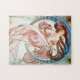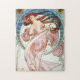 Alphonse Mucha Illustration eines tanzenden Mädchens mit langer Haare umgeben von einem Ziermond wie Struktur. Eine vollständige Linie von Art Deco und Art Nouveau Reproduktionen finden Sie unter https://rolandosgiftshop.com/alphonse-mucha-reproductions/