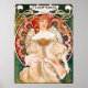 Alphonse Muhca F. Champenois Poster. Lithograph aus dem Jahr 1897. Der tschechische Künstler Alphonse Mucha hat zur Jahrhundertwende einige der schönsten Jugendstil-Plakate und Werbespots kreiert. Dieser Lithograph zeigt ein schönes junges Mädchen in einem aufwändig rosa Kleid mit rot-blauen Stickereien. Sie trägt rosa und rote Blume in ihrem dunkelblonden Haar und ist umgeben von den schweren Blumendekorationen und Spiralen, die für Muchas Werk charakteristisch sind. Ein großartiges Geschenk für Alphonse Mucha-Fans, Jugendstil, Vintage-Plakate und Retrodrucke.