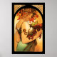 Alphonse Mucha Fruit Plakat. Lithographieposter aus dem Jahr 1897. Der tschechische Künstler Alphonse Mucha malte während seiner gesamten Karriere verschiedene Allegorien. Früchte zeigen eine schöne Frau, die eine Armlehne aus lila Trauben, grünen Birnen, Feigen und roten Äpfeln hält. Das dunkle Haar der Frau ist mit Blume und Blätter geschmückt, und sie trägt ein hellblaues Jugendstilkleid mit silbernen Klammern und goldenen Armband. Ein wunderschönes Geschenk für Mucha-Fans, Jugendstil-Poster und Vintage Drucke.