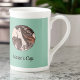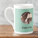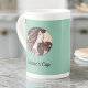 Dieses hübsche Design besticht durch ein Jugendstil-Bild von Alphonse Mucha von einer Frau mit fließendem Haar und einer Garage mit hellrosa Blume auf Vintagem, grünem Hintergrund. Mucha schuf eine wunderschöne Kunst, oft für Plakate und Werbung, von Frauen und Blume in blühenden Kostümen mit anmutigen und unangenehmen Haaren. Dieses Bild des öffentlichen Bereiches ist Teil seines Werks genannt Vitrail pour la façade de la Boutique Fouquet Vlll. Dieses Bild erscheint auf beiden Seiten des Bechers. Geben Sie Ihren Namen in den Personalisierten Bereich ein, oder löschen Sie den Platzhalter-Text, wenn kein Text mit dem Bild gewollt wird.