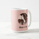Dieses hübsche Design besticht durch ein Jugendstil-Bild von Alphonse Mucha von einer Frau mit fließendem Haar und einer Garage mit hellrosa Blume vor einem peachy rosa Hintergrund. Mucha schuf eine wunderschöne Kunst, oft für Poster, von Frauen und Blume in blühenden Kostümen mit anmutigen und sündhaften Haaren. Dieses Bild des öffentlichen Bereiches ist Teil seines Werks genannt Vitrail pour la façade de la Boutique Fouquet Vlll. Dieses Bild wird auf der Vorder- und Rückseite des Bechers angezeigt. Geben Sie Ihren Namen in den Personalisierten Bereich ein, oder löschen Sie den Platzhalter-Text, wenn kein Text mit dem Bild gewollt wird.