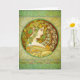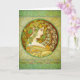 Alphonse Mucha Laurel Grußkarte. Lithographieposter aus dem Jahr 1901. Der tschechische Künstler Alphonse Mucha war für seine allegorischen Werke bekannt. Laurel ist ein Gemälde mit einem schönen jungen, brünetten, in Efeu gezogenen. Sie sieht in Profil nach und trägt eine gelbe Rose auf ihrer Brust. Das Poster ist mit ineinander greifenden Efeu-Blätter, Fliesen und Pfeilen verziert. Ein tolles Geschenk für Mucha-Fans, Jugendstil-Poster und Vintage Drucke.