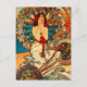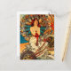 Alphone Mucha Monaco Monte Carlo Postkarte. Lithographieposter aus dem Jahr 1897. Der tschechische Künstler Alphonse Mucha ist einer der besten Jugendstil-Künstler. Monaco Monte Carlo bleibt einer seiner beliebtesten Plakate. Die Arbeit zeigt ein junges brünett in einem weißen Kleid mit rotem Sash. Sie ist umgeben von einem Kranz aus roten und blauen Blumen, Blätter und kleinen Vögeln. Das Mädchen trägt rote Blume im Haar und hält sich die Hände bis zum Mund. Ein großartiges Geschenk für Alphonse Mucha-Fans, Jugendstil, Vintage-Plakate und Werbung.