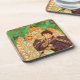 Untersetzer mit Alphonse Muchas lithografischem Poster Lorenzaccio (1896). Der gleichnamige Lorenzaccio des Stücks, in dem die Stars Sarah Bernhardt, ist in lila und schwarz gekleidet, mit einem Buch. Ein grüner Drache übersieht ihn. Ein großartiges Geschenk für Jugendliche und tschechische Kunstliebhaber.