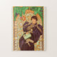 Puzzle mit Alphonse Muchas lithografischem Poster Lorenzaccio (1896). Der gleichnamige Lorenzaccio des Stücks, in dem die Stars Sarah Bernhardt, ist in lila und schwarz gekleidet, mit einem Buch. Ein grüner Drache übersieht ihn. Ein großartiges Geschenk für Jugendliche und tschechische Kunstliebhaber.