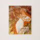 Puzzle mit Alphonse Muchas farbithographischer Feder (1896). Eine schöne Frau in einem weißen Kleid spielt eine Lyrik unter einem blühenden Baum. Ein wunderbares Geschenk für Jugendstilfans und tschechische Kunstsammler.