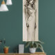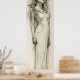 Dieses wunderschöne Poster zeigt eine Skizze, die auf Alphonse Muchas 1897 entstandener Bleistiftskizze basiert, die ursprünglich als Kalenderdesign entworfen wurde. Der Kalender wurde jedoch entfernt, und die Skizze wurde zu einem beliebten dekorativen Panel, das unter dem Titel "Evocation" im Jahr 1898 verkauft wurde. Die Skizze stellt eine schwimmende Frau in einem leichten Kleid dar, das in zarten Skizzen dargestellt wird und Muchas einzigartigen Stil zeigt. Der zeichnend vereint Muchas verträumte Vision eines spirituellen Wesens, ein Motiv, das er seit den frühen 1890er Jahren verfolgt. Interessanterweise war Mucha während dieser Zeit dem Pariser Spiritualenkreis nah und beteiligte sich oft an psychischen Experimenten in seinem Studio mit einem Medium. Der starre Blick und die starre Haltung der Frau zeigen den Einfluss solcher Experimente.