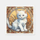 Napkins mit einer Katze im Stil von Alphonse Mucha! Dieses flauschig weiße Kätzchen sieht den Betrachter bewundernswert an. Blume schmücken die Szene. Ein puristisches Geschenk für Katzenliebhaber und Jugendstilsammler!