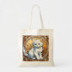 Tote Tasche mit einer Katze im Stil von Alphonse Mucha! Dieses flauschig weiße Kätzchen sieht den Betrachter bewundernswert an. Blume schmücken die Szene. Ein puristisches Geschenk für Katzenliebhaber und Jugendstilsammler!
