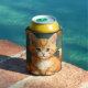 Can Cooler mit einer orangefarbenen Katze im Stil von Alphonse Mucha! Dieses hübsche Kätzchen mit grünen Augen ist von Herbstblättern gerahmt. Ein wunderbares Geschenk für Katzenliebhaber und Jugendstilsammler!