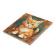 Fliese mit einer orangefarbenen Katze im Stil von Alphonse Mucha! Dieses hübsche Kätzchen mit grünen Augen ist von Herbstblättern gerahmt. Ein wunderbares Geschenk für Katzenliebhaber und Jugendstilsammler!