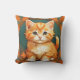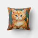 Kissen mit einer orangefarbenen Katze im Stil von Alphonse Mucha! Dieses hübsche Kätzchen mit grünen Augen ist von Herbstblättern gerahmt. Ein wunderbares Geschenk für Katzenliebhaber und Jugendstilsammler!