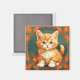 Magnet mit einer orangefarbenen Katze im Stil von Alphonse Mucha! Dieses hübsche Kätzchen mit grünen Augen ist von Herbstblättern gerahmt. Ein wunderbares Geschenk für Katzenliebhaber und Jugendstilsammler!