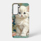 Samsung Galaxy Case mit einer weißen Katze im Stil von Alphonse Mucha! Diese blaue mit Augen, flauschige Pose mit rosa Blume und blauen Decken. Ein fabelhaftes Geschenk für Katzenliebhaber und Jugendstil-Sammler!