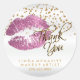 Also Pink Glitzer Lipstick auf Weiß - Danke Runder Aufkleber