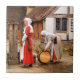 Two Tudor ladies washing water tubs at the water pump. England UK.