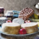 Bauernkost aus den 1800er Jahren, Käse, Äpfel, Krähen, Konserven und Erntebrot. Wasserfarbe England UK