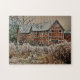 Ein künstlerisches Design eines wunderschönen alten Tudor-Gebäude mit dem leeren Haus an der Vorderseite und der Verkleidung in einem Hinterhof, an einer sehr kalten, frostbedeckten und schneebedeckten Nacht.